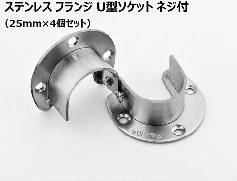 ステンレス フランジ U型ソケット 25mm × 4個セット ネジ付 ハンガーパイプ受け ポール ホルダー クローゼットステンレス U型 ソケット(25mm×4個セット)です。