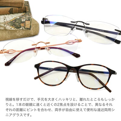 【メール便:1個まで】 遠近両用 老眼鏡 シニアグラス リーディンググラス バイフォーカル 二重焦点 ブルーライトカットおしゃれ ツーポイント ナイロール プレゼント ギフト 父の日 母の日 誕生日 クリスマス 敬老の日 メンズ レディース [ACC]