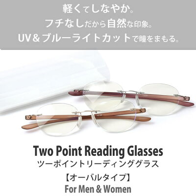 【メール便:2個まで】老眼鏡・シニアグラス RG118-2 ツーポイントリーディンググラス フチなし ブルーライトカット 紫外線カット プレゼント ギフト 父の日 母の日 誕生日 クリスマス 敬老の日 [ACC]