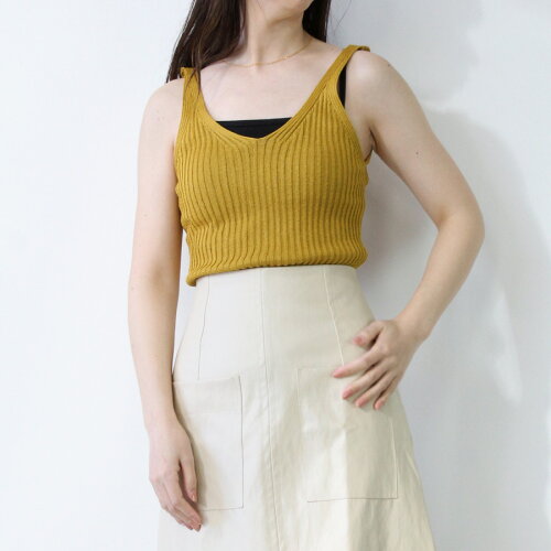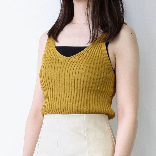 【SALE】【レディース】【新品】MIJEONG PARK(ミジョンパーク)(WOMENS) RIBBED V-NECK KNIT TOP / MUSTARD ニット リブ タンクトップ[NEW]