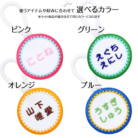 商品情報 商品名 ループ付きワッペン『丸』 パールお得な3枚セット デザイン グリーン、 オレンジ、 ピンク、 ブルー サイズ 直径 4.2cm ループ約4cm 文字フォント 丸ゴシック 筆記体(ローマ字) 素材 綿100% 裏面 ホットメルト(のり)加工済み ご注意 ◆文字フォントが筆記体のご注文は、ローマ字のみとなります。