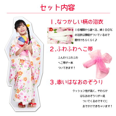 子供 浴衣 女の子 浴衣セット 選べる16種類 着付けラクラク 女の子 浴衣3点セット(100cm/110cm/120cm/130cm) 浴衣 セット キッズ 女の子 浴衣 福袋 子供 こども ゆかた 帯 草履 おび 女児 ゆかた 浴衣セット 浴衣 2018