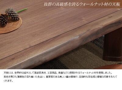 ・信頼の日本製 ・高さが選べる便利な継脚 ・足もとすっきり中天板タイプ ・コードをしまえる収納ボックス付 ウォールナットの天然木の耳をそのまま天板縁に生かした、世界でひとつの家具調こたつ*花月* 落ち着いた色合い、重厚感のある美しい編み模様が圧倒的な存在感と優雅な印象を与えてくれます! ヒーターはすぐに暖まる石英管ヒーターを使用し、厚みも従来のものに比べて薄型となっているので足元も広々です♪
