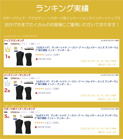 【公式ストア】 アンダーシャツ ノースリーブ ベースレイヤー メンズ アンダーウェア インナー アンダー スポーツ ゴルフ サッカー 野球 ドライ 速乾 汗冷え スポーツインナー スキー トレラン ランニング マラソン トレッキング 登山 山行 アウトドア キャンプ オンヨネ
