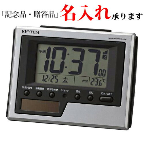 リズム RHYTHM デジタル時計 8RZ215SR19 残照機能ライト 電波 置き時計 フィットウェーブソーラーD215 シルバーメタリック 名入れ