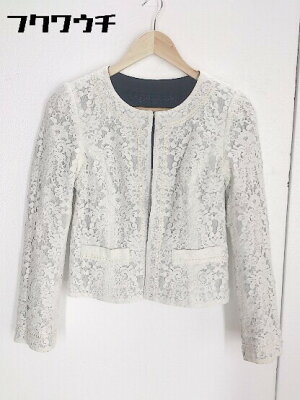 ◇ Apuweiser-riche ラメ レース 長袖 ノーカラー ジャケット サイズ1 ネイビー ホワイト レディース 【中古】