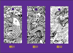 表面の全彫デザイン 木札の全面にデザインを彫刻した喧嘩札。