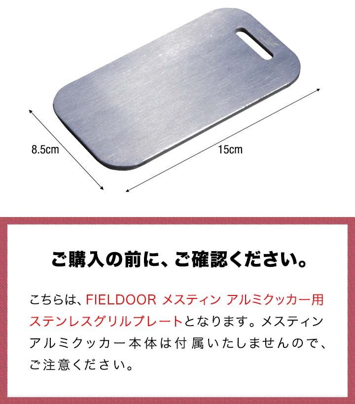 FIELDOOR メスティン アルミクッカー専用 ステンレス製 グリルプレート 単品 Mサイズ 幅15cm×奥行8.5cm シーズニング不要 鉄板 クッカー メスキットパン ソロキャンプ キャンプ飯 調理器具 収納 アウトドア用品 ※プレートのみ 1年保証 ★[送料無料][メール便]