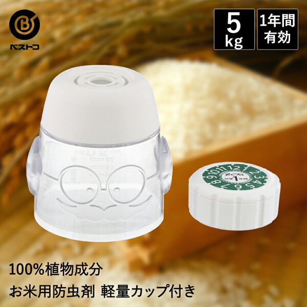 ■商品概要商品名:米びつ先生 5kg 1年用 計量カップ付容量:5kgまでの米びつ用 1年間有効サイズ:(約)縦7.9×横7.1×高さ8cm重さ:(約)52g材質:本体/生分解性プラスチック(トウモロコシ) 主成分/ニンニク、トウガラシ、その他植物成分 計量カップ容器/ABS樹脂、PCT樹脂